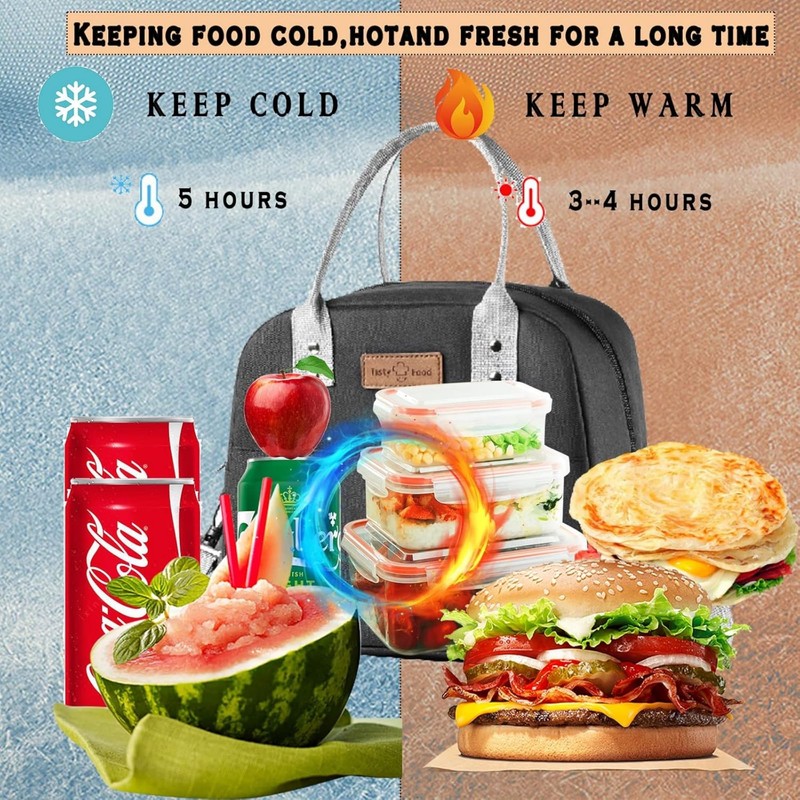 - Upgrade Perfect Insulation: Reusable lunch bag with thickened waterproof aluminum foil and three layers of insulation. Provides excellent thermal performance, durability, and easy cleaning. Keeps food cool or warm for 3-4 hours. Leakproof, lightweight, and features a soft handle for convenience.