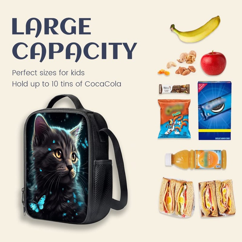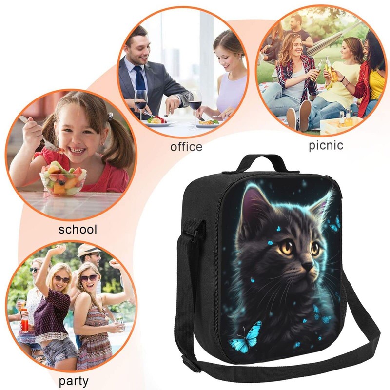 Insulated Lunch Box Cat Lunch Bag for Women & Men Small Leakproof Cooler Food Lunch Containers Reusable Large Capacity Lunch Tote Bags with Shoulder Strap for Work Travel Picnic