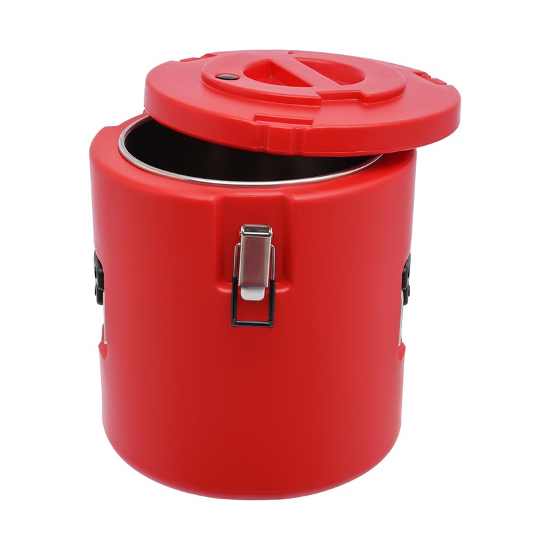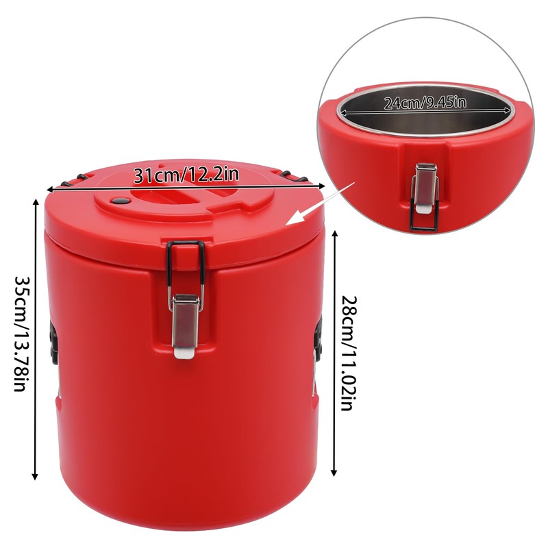 Insulated Soup Container, Portable Commercial Hot Cold Box Food Warmer Bucket, Large Barrel Cooler Storage Tool Stainless Steel Lining with Dust Cover for Restaurant Canteen Home Party (Red, 15L)