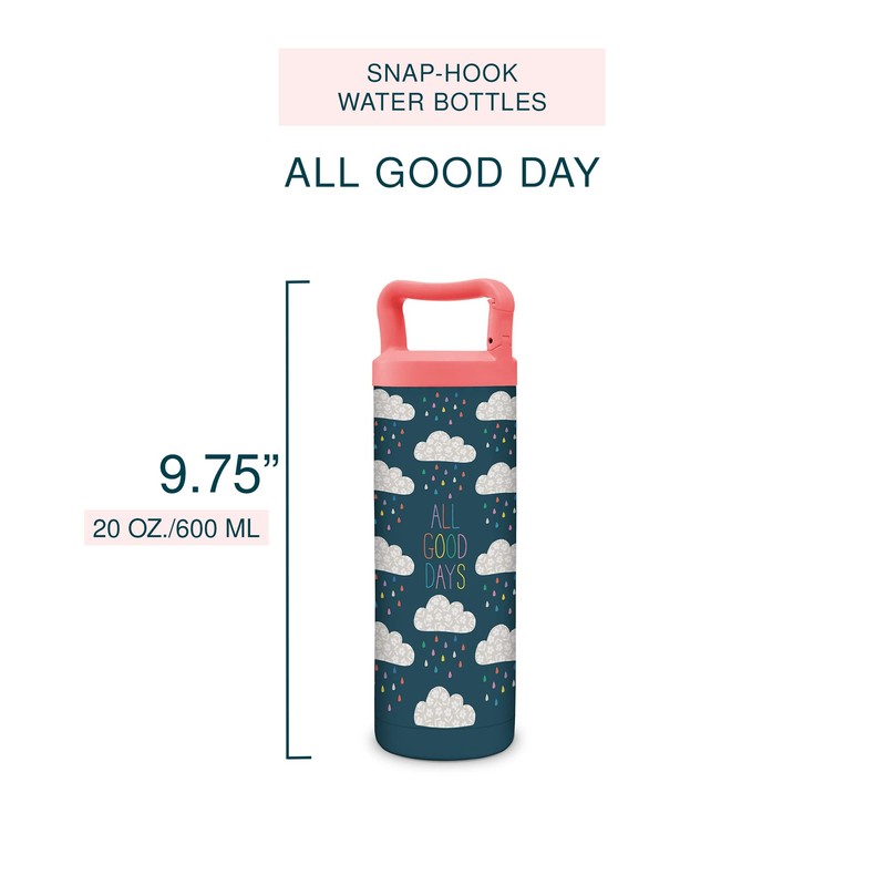 Insulated Water Bottle - 20-Ounce Snap-Hook Stainless Steel Water Bottles - BPA-Free All Good Days by Studio Oh!