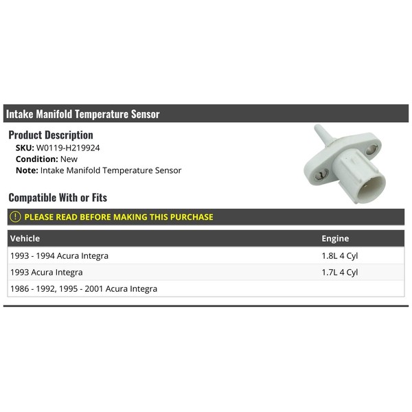 Intake Manifold Temperature Sensor - Compatible with 1986-2001 Acura Integra