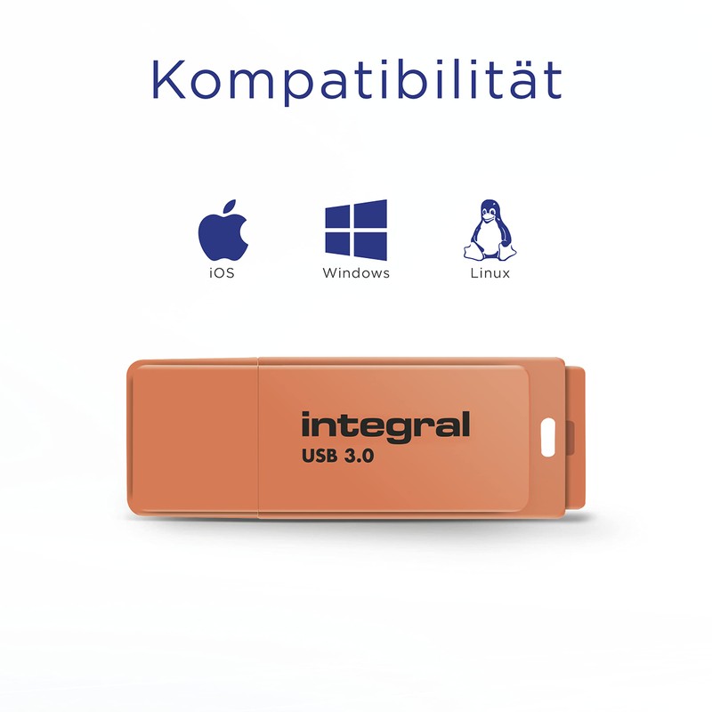 Integral Neon 128 GB USB 3.0 Flash Drive - Orange (Up to 110 MB/s)
