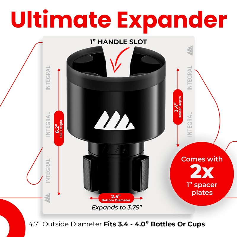 - STAYS FIRMLY IN PLACE: We have the only expandable base with built-in, silicon grips. Others use cheap, glued-on grips that immediately fail in any hot vehicle. Once these fail, the product is useless. Enjoying a bit of rough terrain? An adjustable base is the only way to keep an expander and oversized bottle firmly in place. The Ultimate Expander features a 3-ring expandable base with a diameter range of 2.5-3.75 to keep it firmly in place, regardless of terrain type.