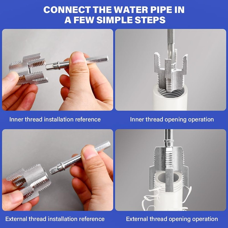 Integrated Internal & External Pipe Threading Tool, 1/2", 3/4", Dual-Function Pipe Thread Cutter Compatible PVC & Plastic Pipes Threader(SIZE:1/2"+3/4")