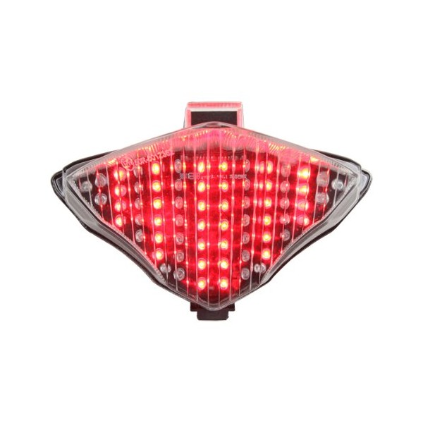 Features: \- **34** ultra bright red and **28** ultra bright yellow LEDs **New Programmable Features:** -ON/OFF Stop Alert -ON/OFF Sequential Signals -Direct plug and play with included sub-harness (OEM connectors for 100% bolt-on with zero modifications) -Resistors built into sub-harness -Stop Alert - utilizes 3 quick red flashes when brakes are applied initially -Sequential alternating yellow LED turn signals -Warranty: 1 year Fits: 2004-2006 Yamaha YZF R1 Tail light is equipped with Stop Alert function, in which 3 quick flashes are applied when the brakes are pressed. Sequential LEDs flash in sequence in the direction you are turning or merging so there is no confusion which way you are going. A microprocessor is use with an integrated circuit chip (IC) to control all the functions of park, brake, and sequential signals. All IC chips are micro soldered by machine to deliver consistent and reliable solder points.