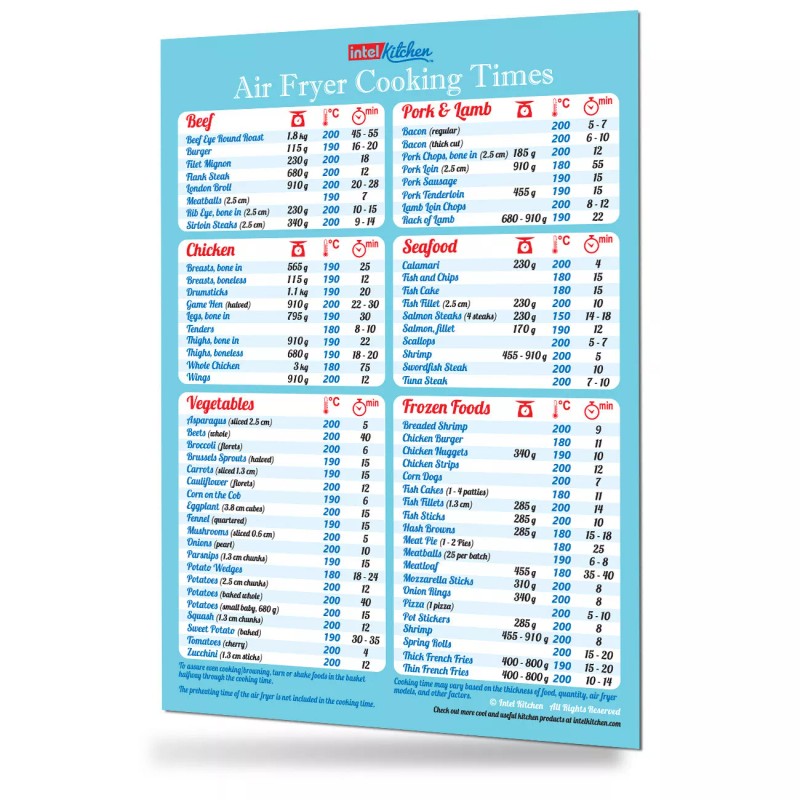 Intel Kitchen Air Fryer Cooking Times Magnet Cookbook Lid Accessories Ninja Cheat Sheet Chart - Blue Celsius Metric Version