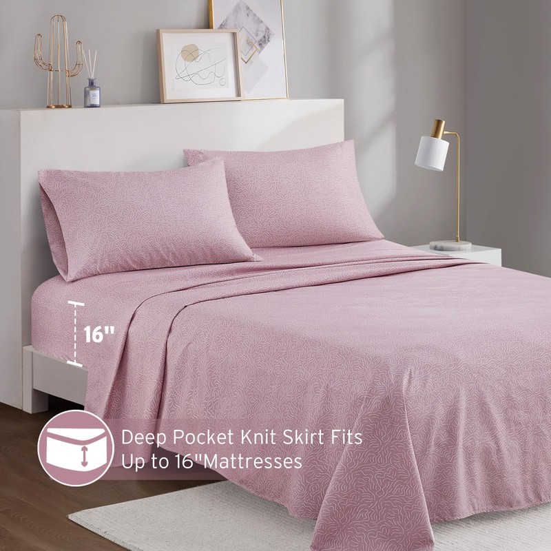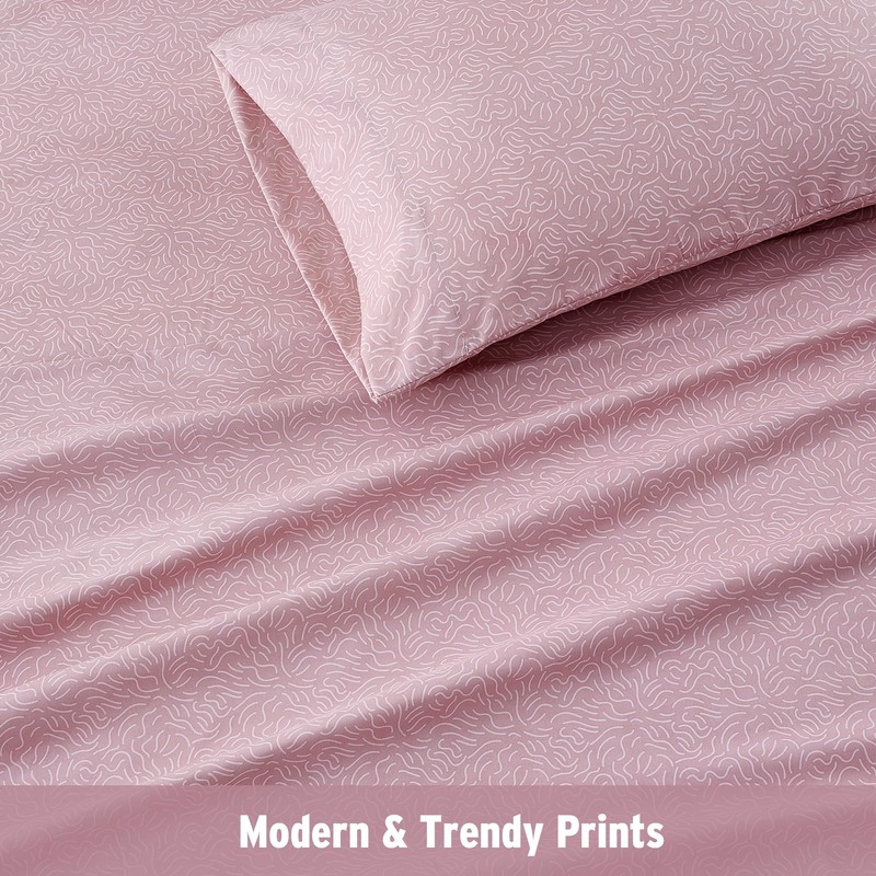 Intelligent Design Printed Microfiber Sheet Set, Soft Modern Bedroom Decor, Elastic Deep Pocket, All Season, Lightweight, Breathable, Cozy Bedding, Pillowcase, Twin Blush Waves 3 Piece
