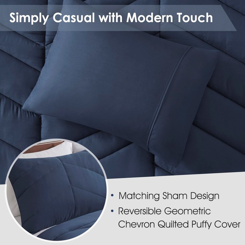 - Plush Comforter - Indulge in plush comfort with our brushed microfiber comforter set. Chevron quilted and puffy comforter offers simply a casual style bedding with modern touch. Oeko-Tex certified for superior comfort and the highest standard