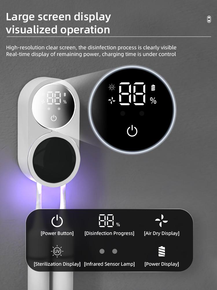LED Smart Screen - Toothbrush Cleaner comes with a LED screen. Battery status, cleaning progress, air drying status, all functions visible at a glance.