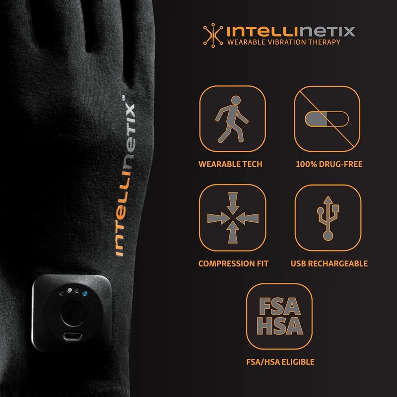 - PAIN-RELIEVING. Available without a prescription, Intellinetix Therapy Gloves are a new alternative treatment that helps provide drug-free pain relief. The vibrations may act as a sensory distraction, disrupting chronic pain signals traveling to the brain and ultimately masking the pain.