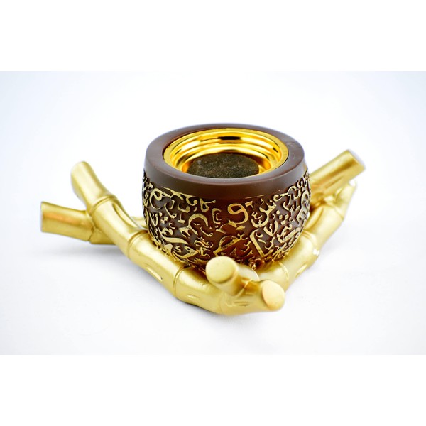 Intense Oud Bamboo Trangle Arabic Script Incense Bakhoor Burner - Brown