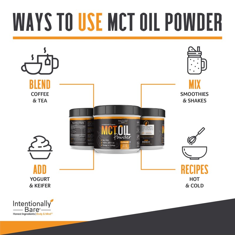 - Healthy Fat: It's so easy to get a healthy fat boost with our C8/C10 MCT Oil Powder. Adding it to your morning coffee or tea is like heaven in a cup! You can just stir it in, but it will be creamier if you blend it.