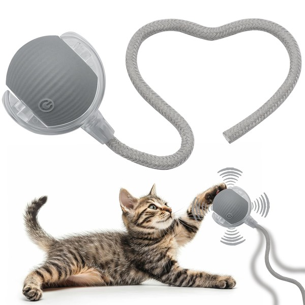 Interactive Cat Dog Toy Ball: Indoor Small Automatic Moving Smart Rolling Fun Pet Game with Led Light and String Tail for Motion Activated, Cute Kitten Puppy Present, Exercise Wheel Supplies (Grey)