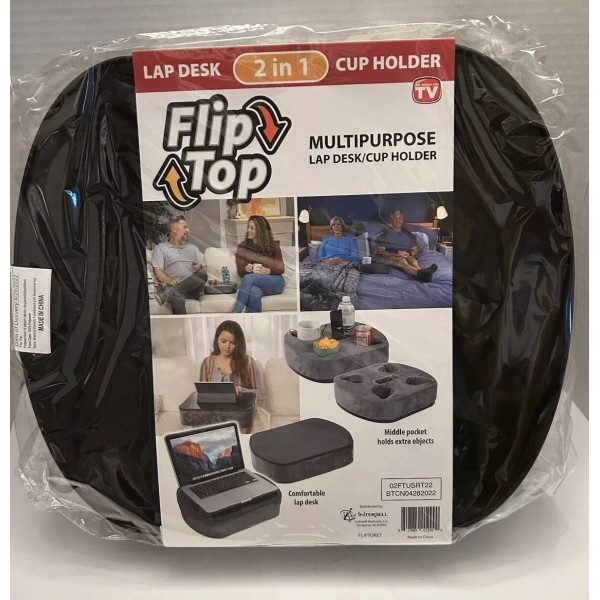 Intercell Flip Top Cup Holder & Lap Desk Holds Computer, Snacks/drinks, College/School NEW