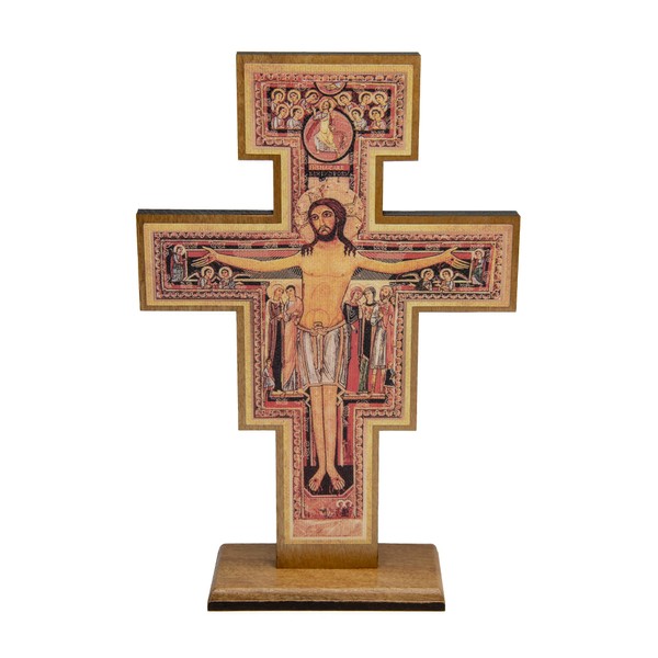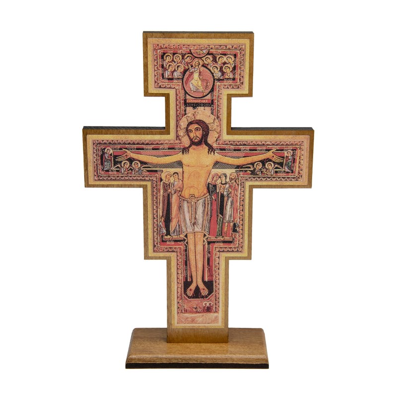 Intercession San Damiano Standing Wood Cross Crucifix