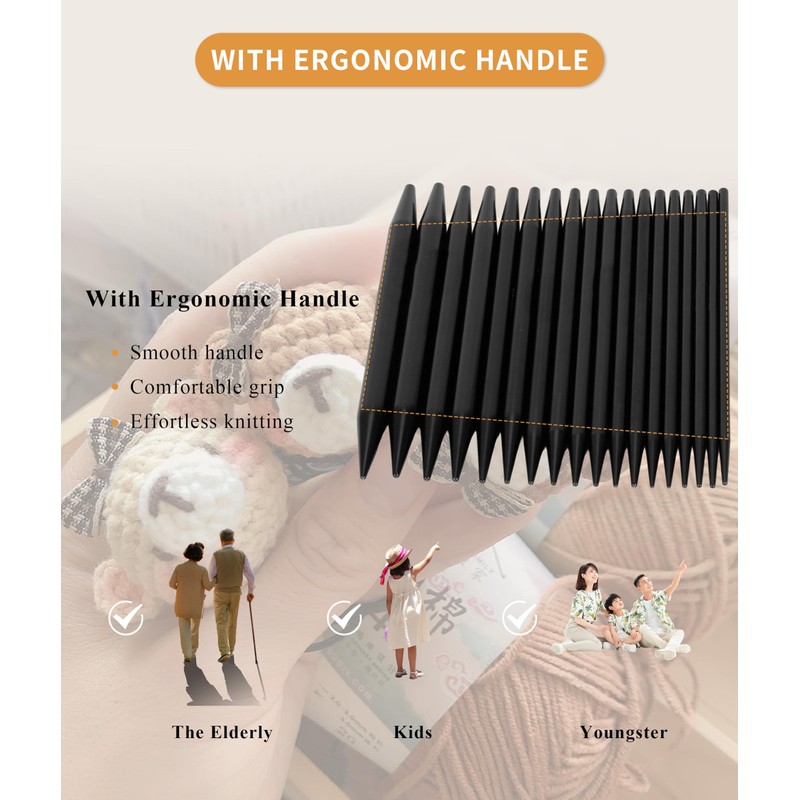 - WITH ERGONOMIC HANDLE: This sock knitting needle comes with an ergonomic handle. This round head knitting needle with smooth handle is ergonomically designed for a comfortable grip, ideal for the elderly and children.