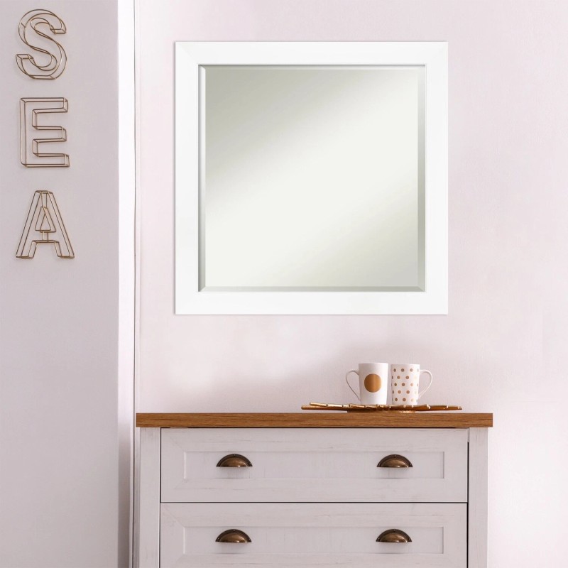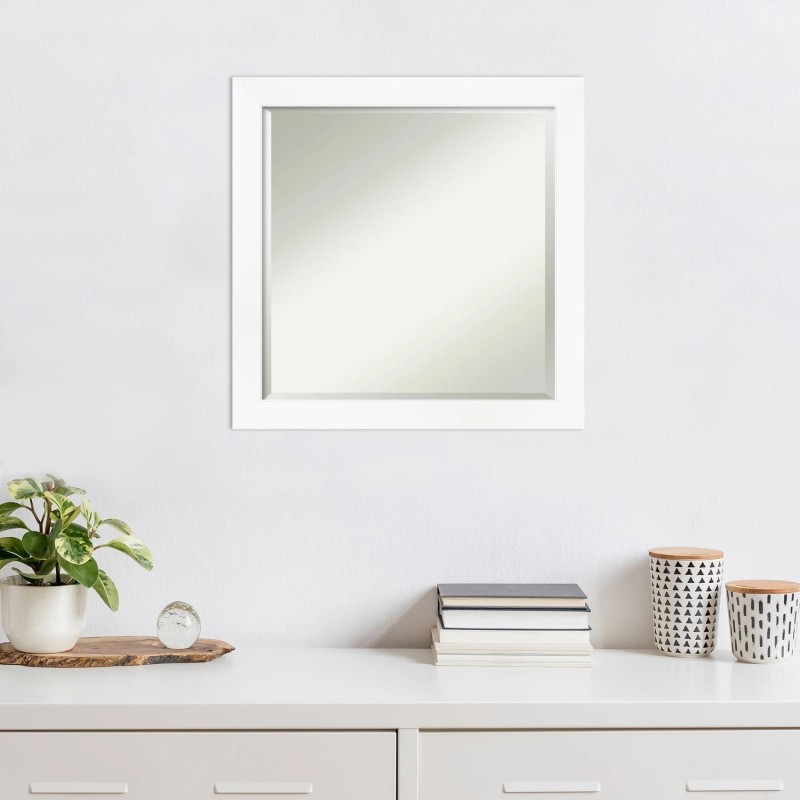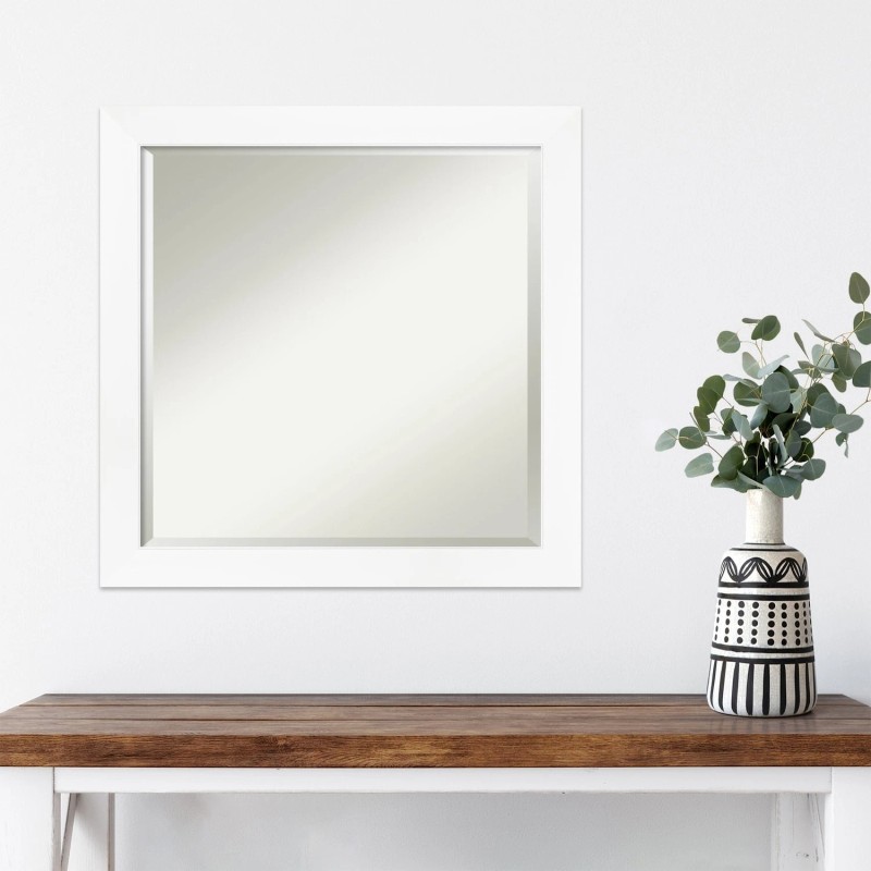 Product Description: Give your home or office the finishing touch with this Beveled Wall Mirror framed with the Cabinet White Narrow frame. Individually made using traditional custom framing techniques, it has the quality you would expect from your local frame shop. It holds its value with premium finishing that can be appreciated up close.