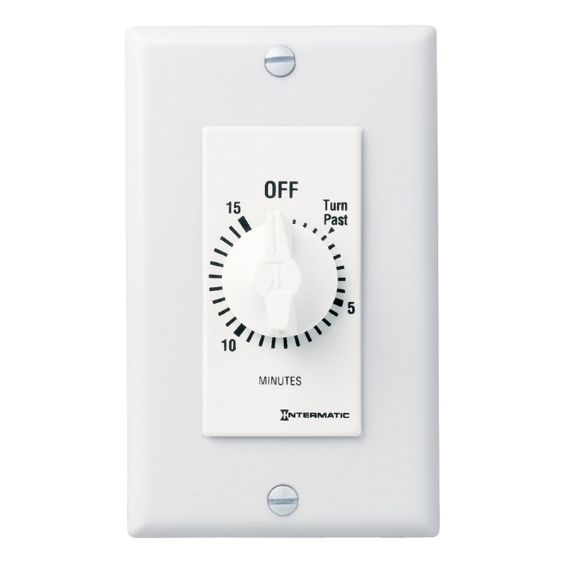 Intermatic FD15MHW 15-Minute Spring-Loaded In-Wall Countdown Timer for Fans and Lights with Hold, White
