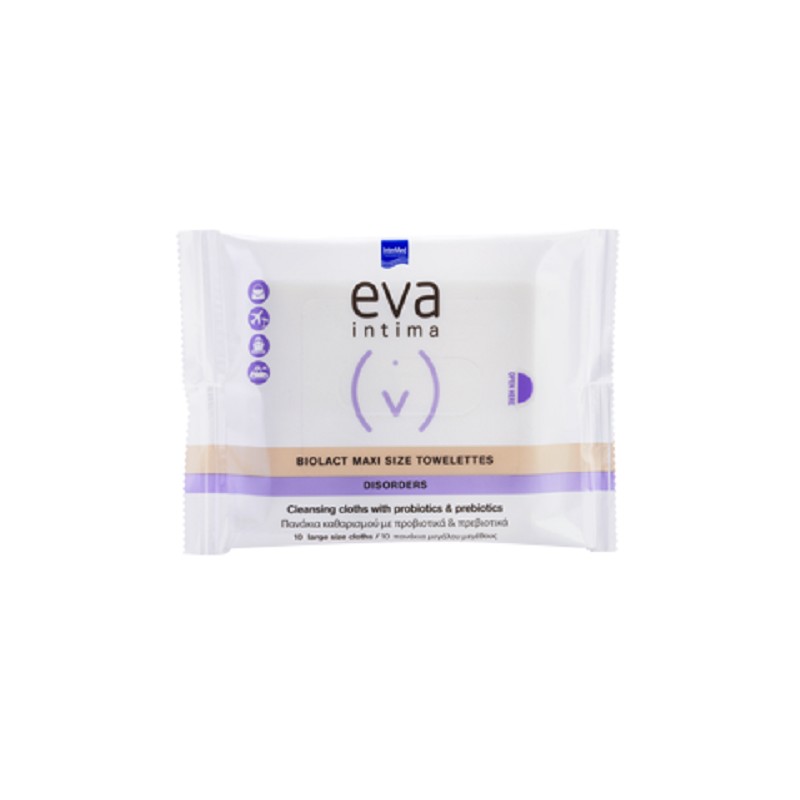 Intermed Eva Intima Biolact Maxi Size Towelettes Cleansing Cloth for the Sensitive Area with Probiotics & Prebiotics 10pcs