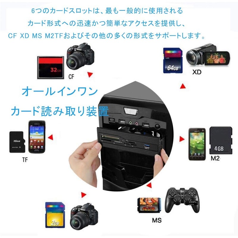 Internal Card Reader, Bewinner PC Front Panel USB 3.0 Ports M2 SD MS XD CF TF Card Dashboard Ultra Durable Multifunction High Speed Internal Memory Card Reader