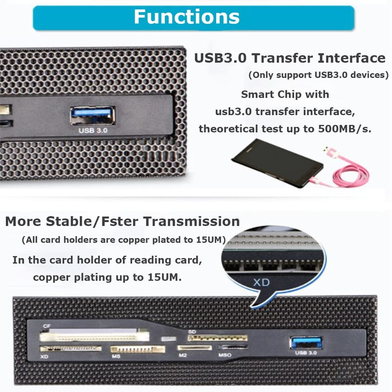 Internal Card Reader, Bewinner PC Front Panel USB 3.0 Ports M2 SD MS XD CF TF...