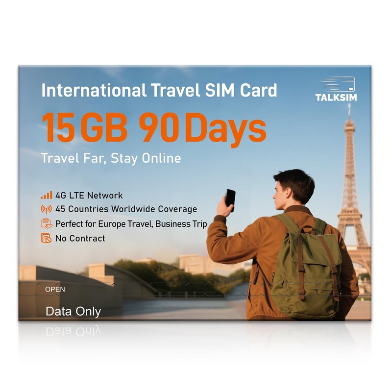 - 【Flexible Data Top-Up Plans】This extended 90 days for 15GB data only SIM card delivers a high speed 4G LTE network, great for uninterrupted navigation, social media activity, and HD streaming. Sign up now to activate hassle-free connectivity immediately. TALKSIM’s prepaid USA SIM card provides a range of scalable plans (1GB, 10GB, 30GB, and more)—budget-friendly options designed for business trips, vacations, or remote work scenarios. Important Note: This 4G LTE international SIM card is for data use only; it does not support voice calls, text services, or come with a phone number.