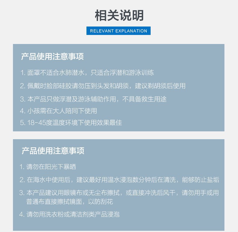- Usage Area: Snorkeling, Diving