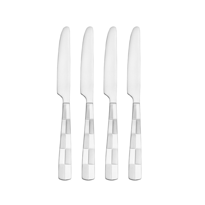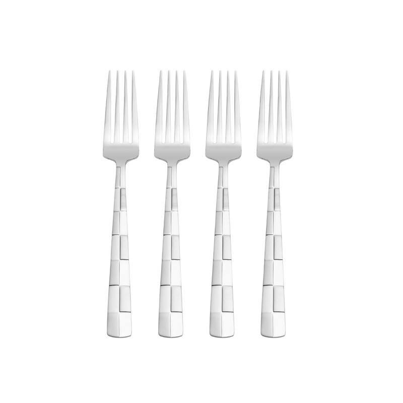 Since 1898, International Silver has taken pride in crafting high quality sterling silver and steel flatware in chic yet uncomplicated tablesettings with clean, classic, timeless designs. International Silver's Checkered Frost Flatware brings a pattern with a unique look to it. Features a frost and polished stainless steel checkered design on the handle, this set will add style to any table setting. Crafted of superior quality 18/0 stainless steel, this set will stand up to the rigors of everyday use. Dishwasher safe. 20 piece set, service for four, includes (4) each: dinner fork, salad fork, dinner knife, dinner spoon and teaspoon.Included: Dinner Fork,Dinner Knife,Salad/Dessert Fork,Spoon,Teaspoon