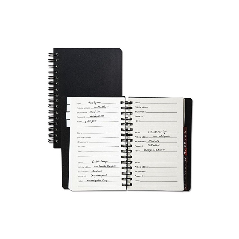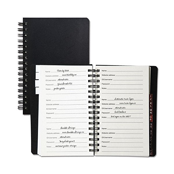 Internet Password Keeper Book, 75 Pages, 4-1/2" x 5-3/4", Spiral-bound with Alphabetical Tabs, Organizer Journal Includes Website Address, Username, & Password Pages