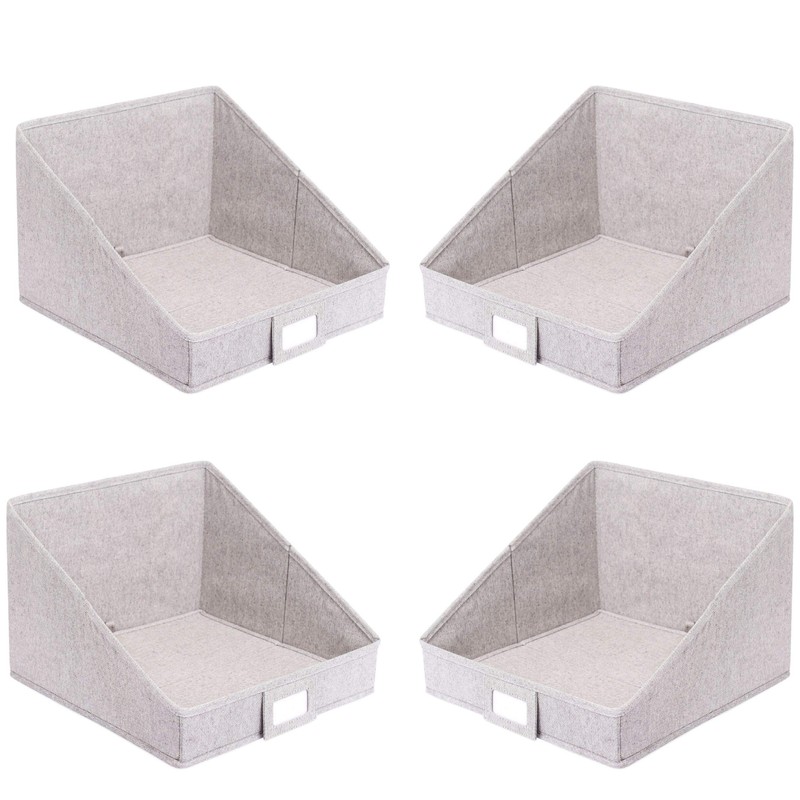 Internet’s Best Open Cloth Storage Bin - Closet Shelf Storage Box - Organize Sheets Blankets Towels Sweaters Scarfs - Grey (4 Pack)