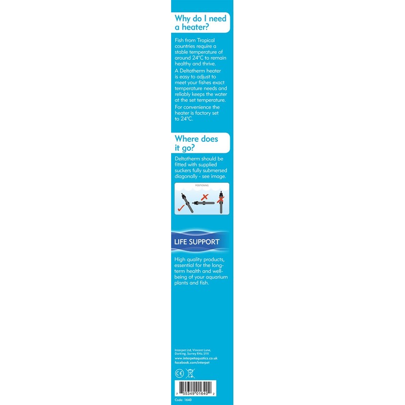 Interpet Deltatherm Aquarium Fish Tank Heater, adjustable, for Tropical and Marine, 50 W, for aquariums up to 45 litres,Black