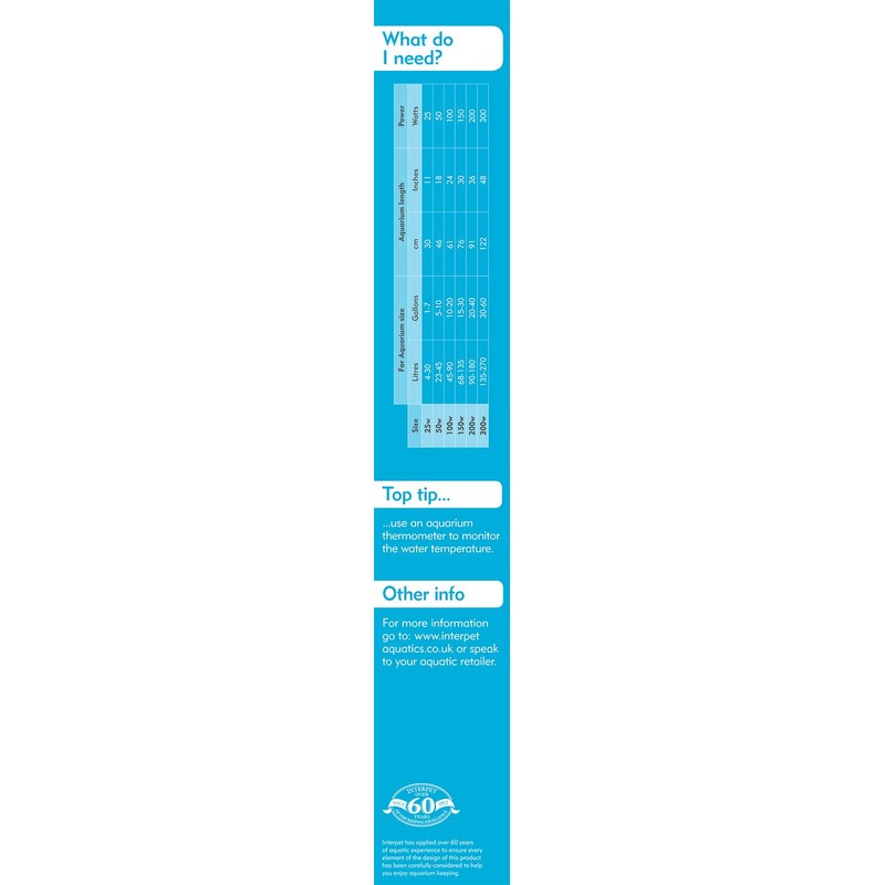 - 50 W model for aquariums from 23 to 45 litres, heater dimensions 26.3 cm x 2.5 cm x 2.5 cm
