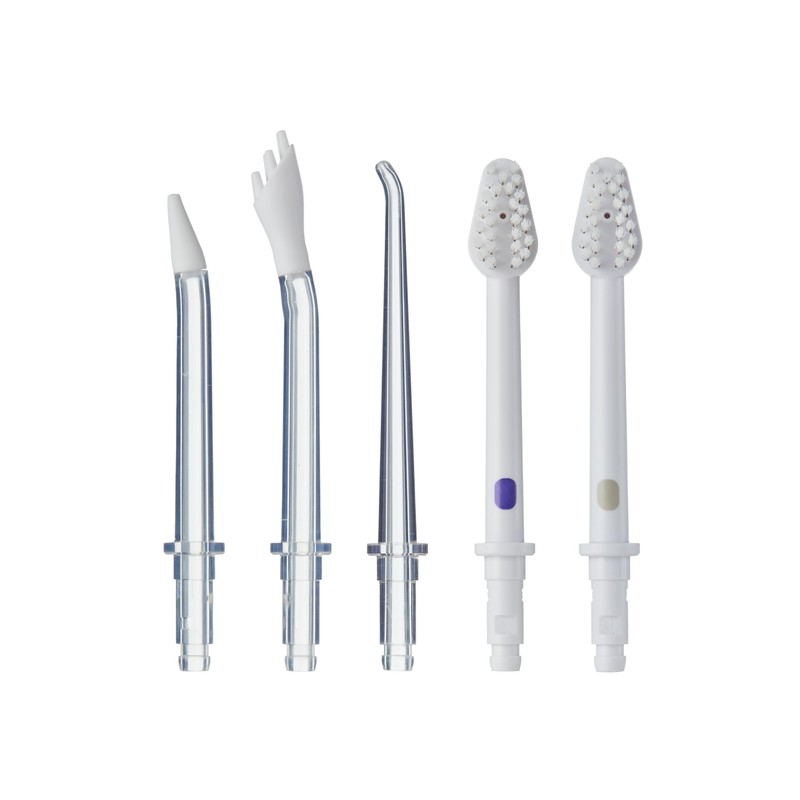 • Five Replacement Water Flosser Tips: Includes 2 full-size brush head tips, 1 standard water jet tip, 1 gum massage tip, and 1 subgingival tip