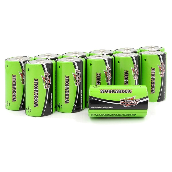 Interstate Batteries D Cell Alkaline Battery (12 Pack) All-Purpose 1.5V High Performance Batteries - Workaholic (DRY0085)