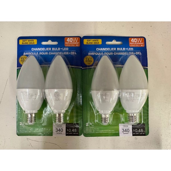Intertek (2-Pack) LED B10 Candelabra Chandelier Frosted Light Bulbs 4 watt - 40 Watt Equivalent 340 lumens 3000K Soft White Non-Dimmable Indoor/Outdoor 13.7 Year Life Brand New Sealed FREE SAME DAY SHIPPING |