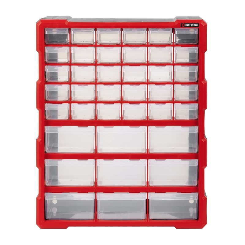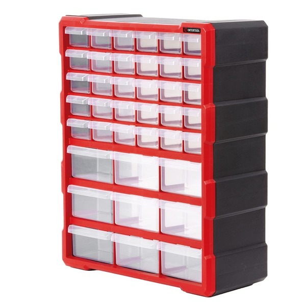INTERTOOL Hardware and Craft Storage Organizer Cabinet, 39 Compartment Drawers, Plastic Container for Storing and Organization, Black and Red BX08-4013