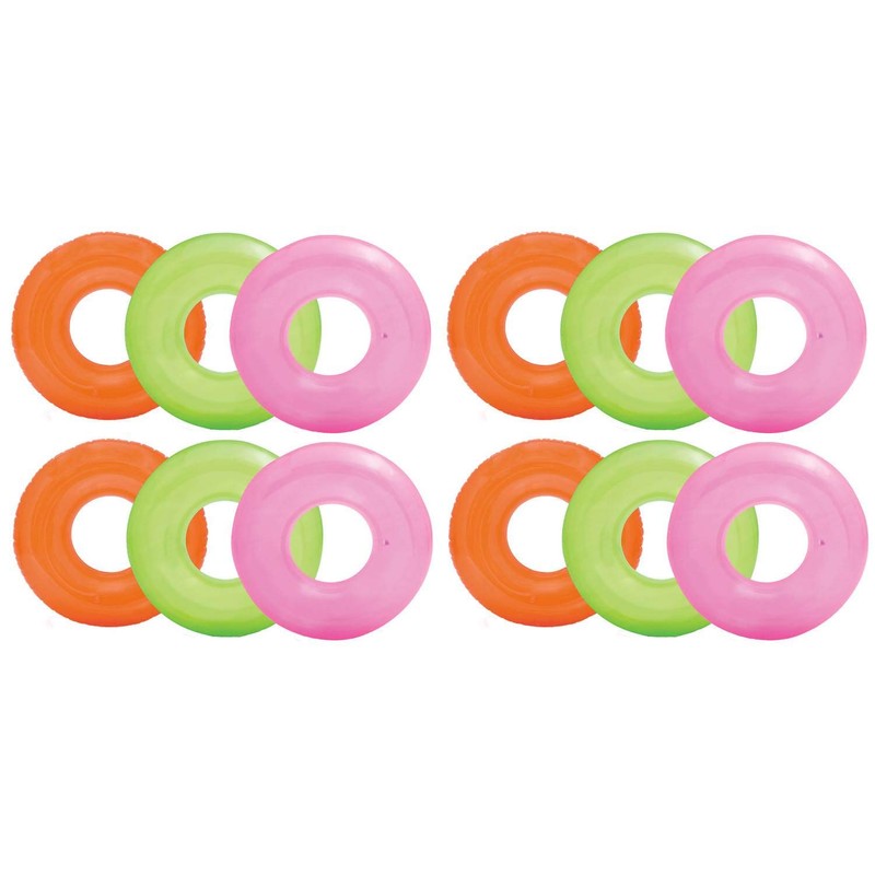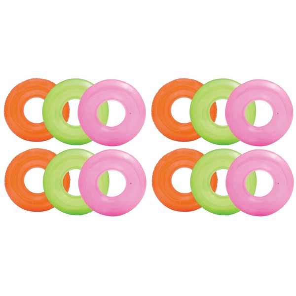 Intex Colorful Transparent Inflatable Swimming Pool Tube Raft (12-Pack)| 59260EP