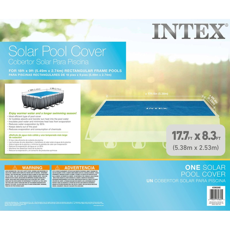 Intex Solar Pool Cover for 18' x 9' Rectangular Frame Outdoor Swimming Pools with Carrying Storage Bag, (Pool Cover Only), Blue