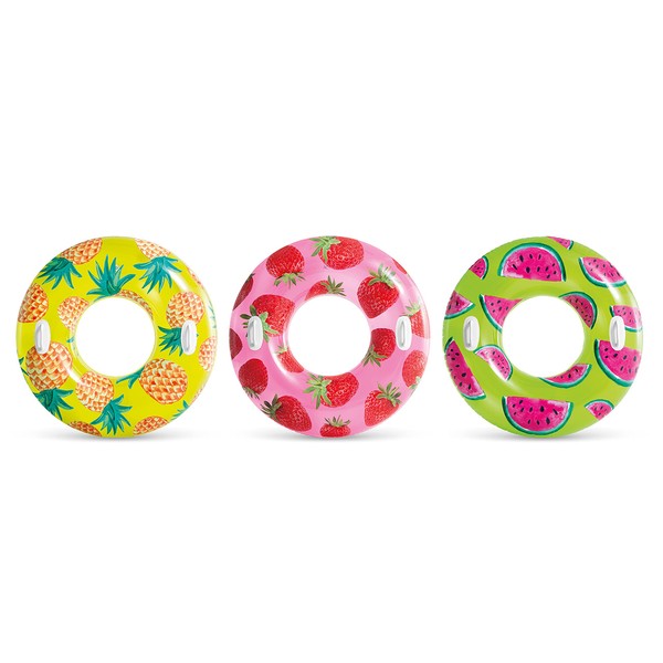 Intex Tropical Fruit Tubes Strawberry, Pineapple and Watermelon Pattern Assortment, Uninflated Diameter 42" (56261NP)