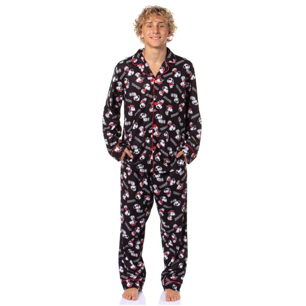 INTIMO Peanuts Men's Snoopy Joe Cool Classic Pajama Button-up Coat Top with Pants Lounge Sleep Set, Multicolored, XXL