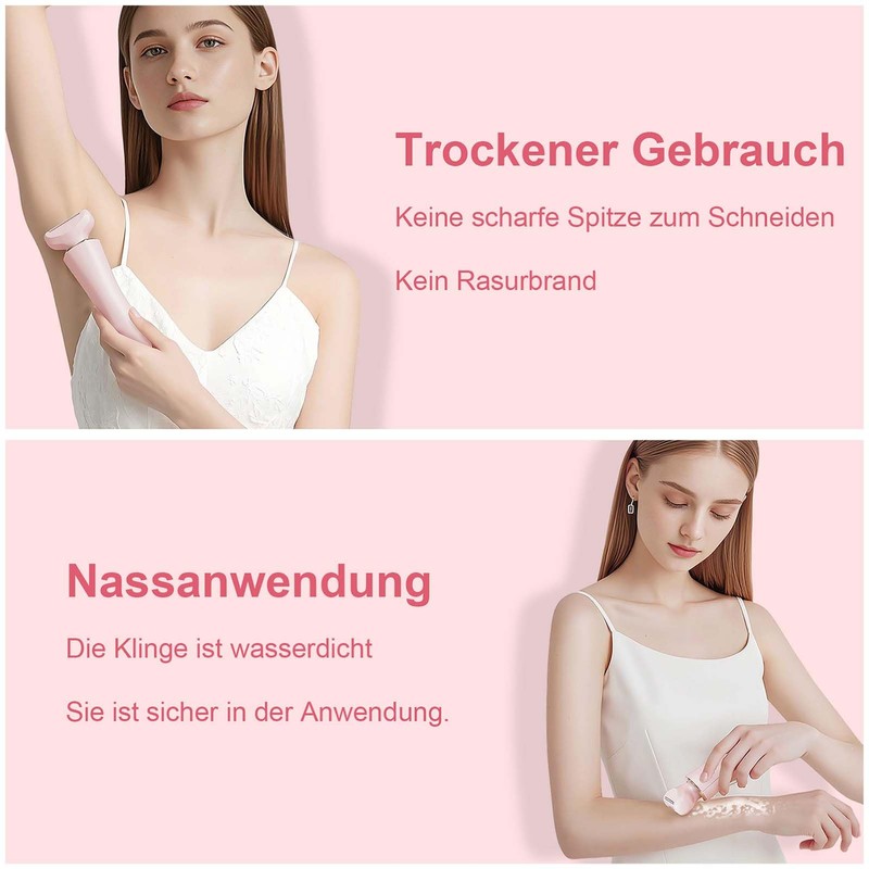 - 【Schmerzfrei und hautfreundlich】Der Bikini Trimmer ist mit hypoallergenen Edelstahlklingen ausgestattet, die eine sanfte und schmerzfreie Epilation ermöglichen. Die scharfen Edelstahlklingen rasieren ohne unangenehmes Ziehen und sind sanft und reizfrei zur Haut, wodurch Hautreizungen und -rötungen minimiert werden.