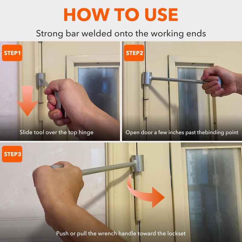 - Operation Instructions: First, put the hinge repair wrench on the door hinge to be repaired. You can adjust the hinge gap by turning it left or right. It can effectively solve common door problems such as misalignment, sticking or sagging