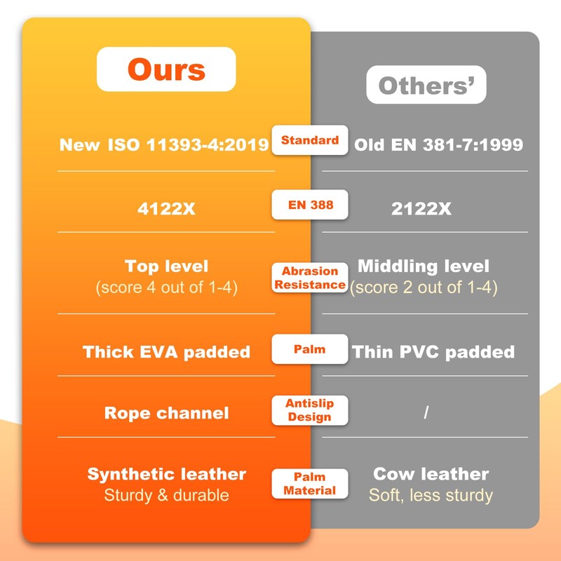 - All-round protection performance: synthetic leather palms are padded with durable EVA and reinforced with rope channels. Durable and abrasion-resistant neoprene provides extra ankle protection.