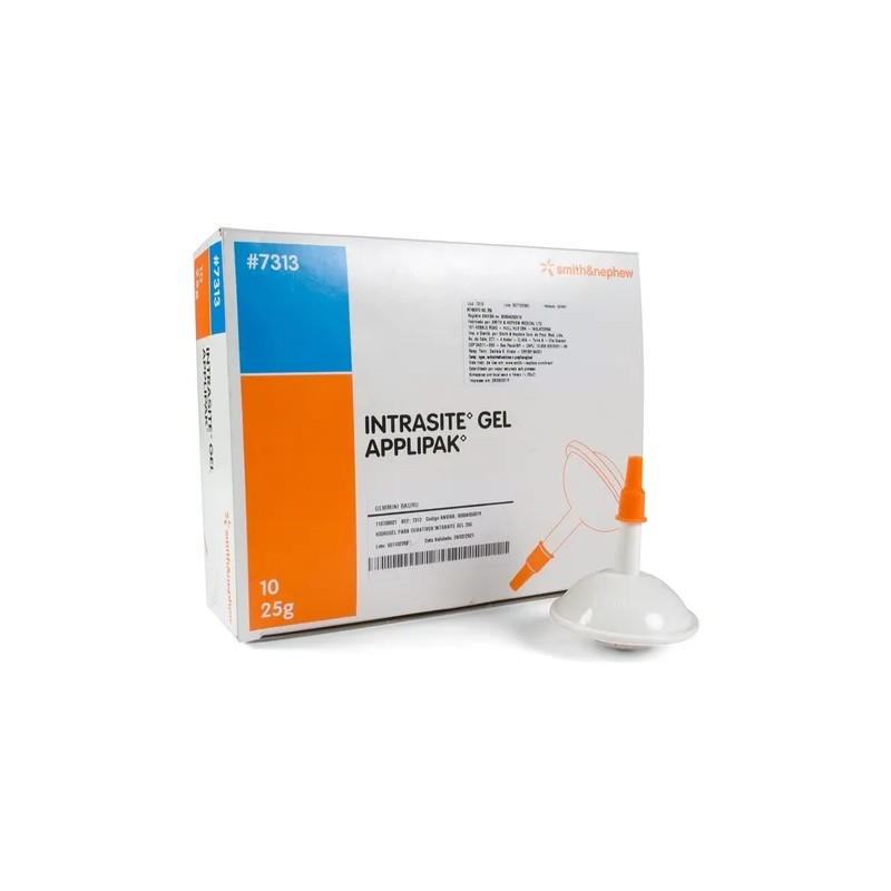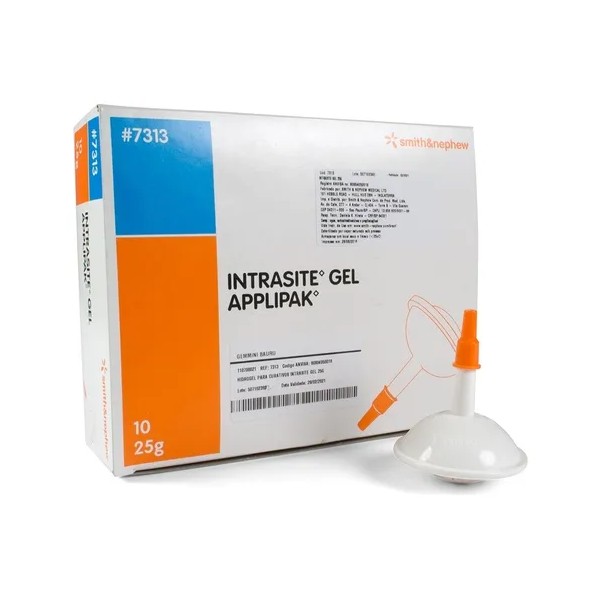 Caja con 10 piezas de Intrasite Gel de 25gr Smith & Nephew.