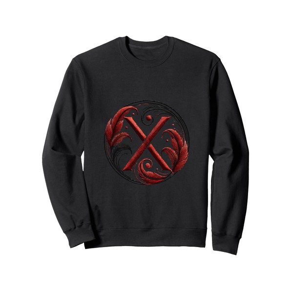 Intricate Feather Cross X Embroidery Art Pattern Design Sweatshirt
