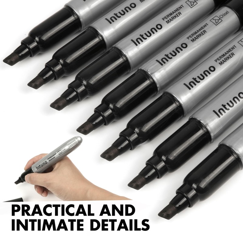 INTUNO Jumo Permanent Markers, 60 Count Black, Chisel tip, Oil-Based Permanent Markers, Waterproof and Fade-Resistant, for Paper, Wood, Metal, Glass and More
