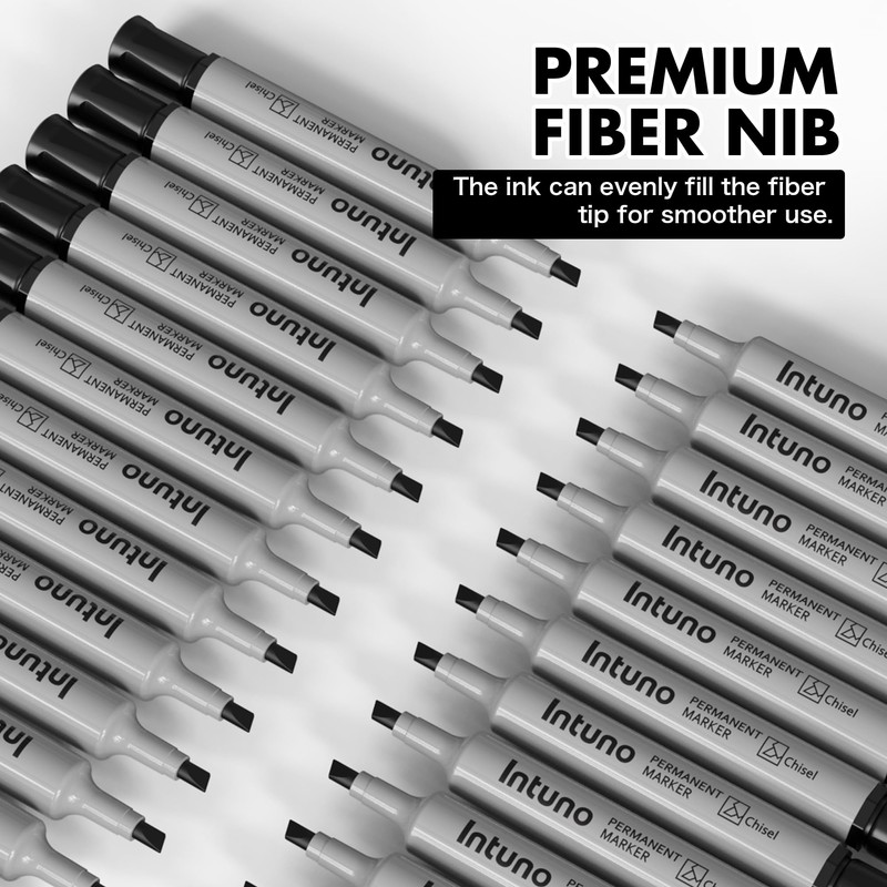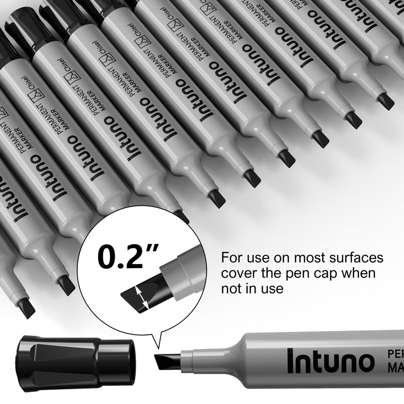 INTUNO Permanent Markers, 96 Count Black, Chisel tip, Oil-Based Permanent Markers, Waterproof and Fade-Resistant, for Paper, Wood, Metal, Glass and More
