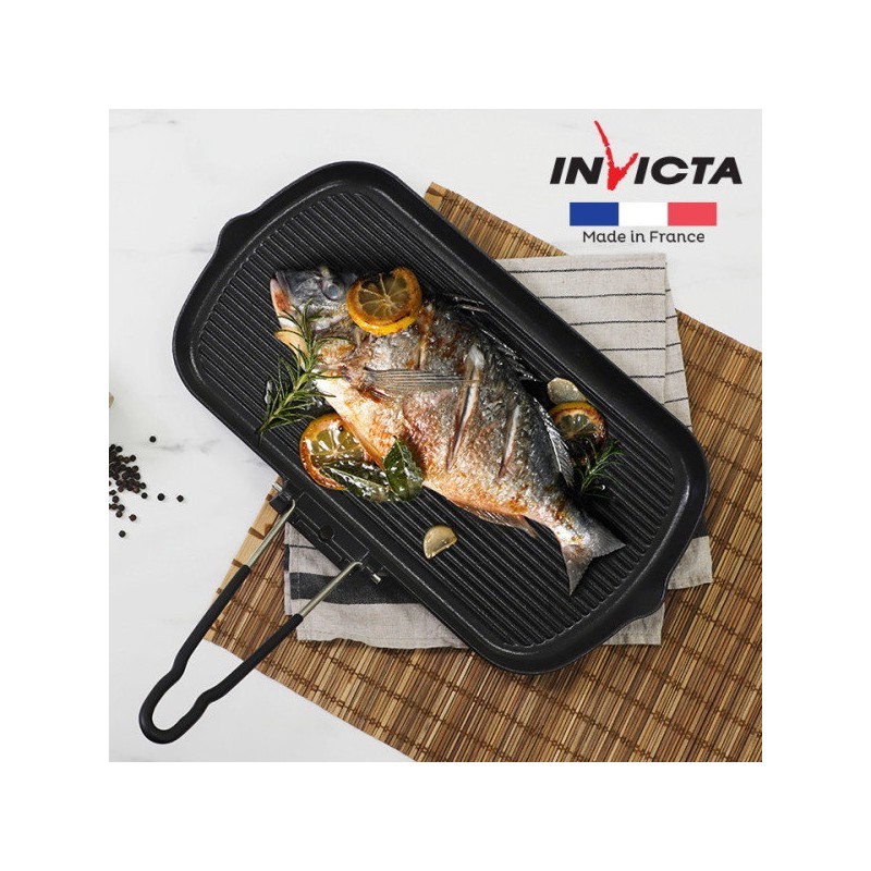 [Invicta] Cast iron wide grill 37x22cm (folding handle) / [인빅타] 무쇠주물 와이드 그릴 37x22cm (폴딩핸들)