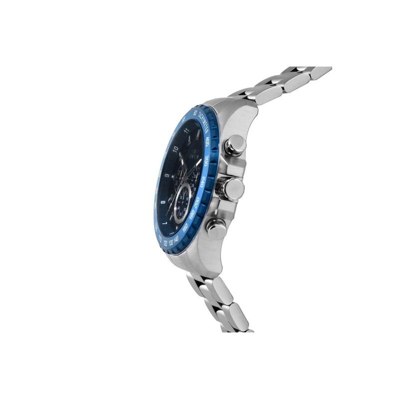 - Flame Fusion crystal; Push/pull crown; Stationary stainless steel bezel with blue top bezel ring; Functional Subdials: 60min, 60sec, 24hr; 100 meter water resistant: Suitable for recreational surfing, swimming, snorkeling, sailing and water sports. Not suitable for diving.