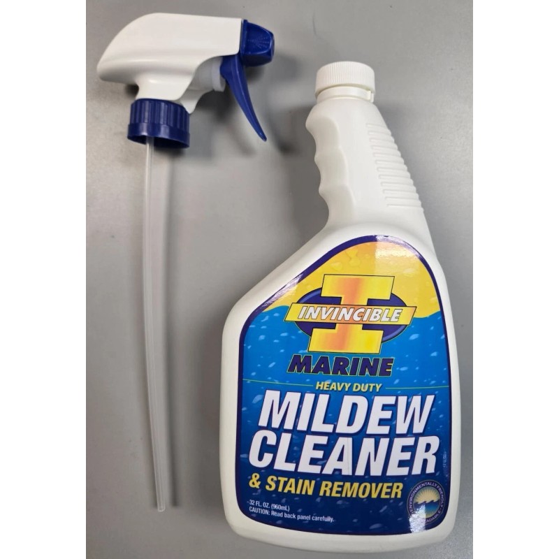 The Invincible Marine Mildew Cleaner Spray Bottle 32 oz. heavy-duty formula removes dirt, mold, and mildew stains on contact. Spray on, allow one to two minutes to penetrate, and wipe off with a wet cloth or sponge without scrubbing! Or, if you prefer, rinse with a water hose. According to the manufacturer, the stain remover and mildew boat cleaner for boat seats and more is an environmentally friendly, biodegradable formula for vinyl boat covers, cushions, tarps, awnings, hard surfaces, etc.